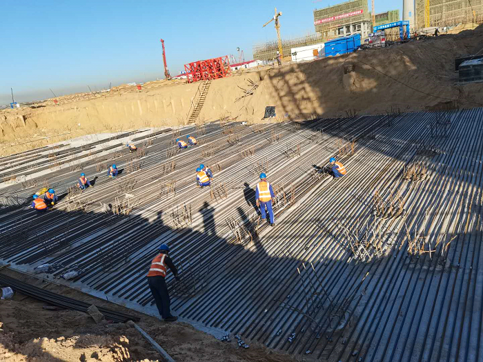 由勝幫科技股份有限公司EPC總承包、中化三建公司施工的陜煤集團榆林化學有限責任公司1500萬噸/年煤炭分質清潔高效轉化示范項目粉煤熱解裝置兩器框架筏板基礎經過36小時的艱苦奮戰順利完成了全部混凝土澆筑工作。該筏板基礎鋼筋量417噸,混凝土量2950方,最大厚度為2.8米,屬于大體積混凝土工程。自樁基工程施工完成后,針對該區域周邊場地條件受限,原始地貌高出場平正負零1.2米…
