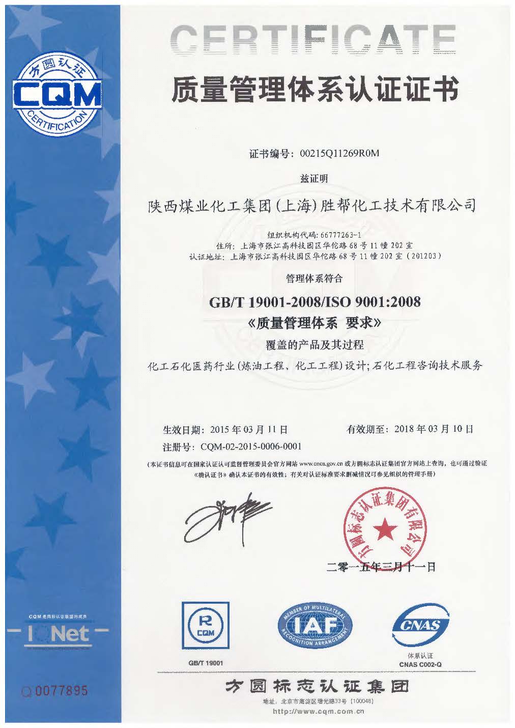 11月18日上午,陜西煤業化工集團公司與中國寰球工程公司在北京舉行戰略合作框架協議簽字儀式。 框架協議中確立了上海寰球工程有限公司與上海勝幫化工技術有限公司建立技術合作關系,實現信息暢通、合作有序、高效運作。 中國寰球工程公司總經理王新革、陜煤集團常務副總經理尤西蒂出席儀式并作重要講話。 公司總經理沈和平、副總經理許涵參加了儀式。 中國寰…