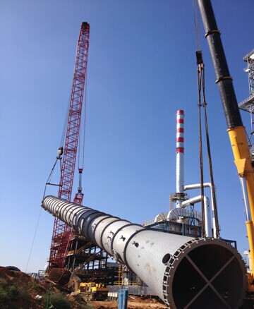 自第一臺設備進場以來,我項目部在業主、監理的正確指導和大力幫助下,大型設備吊裝工作順利推進,隨著2014年9月20日“兩塔一罐”(焦化分餾塔、加氫分餾塔、焦化緩沖罐)精確就位,400噸吊車開始退場,預示著全場大型設備吊裝工作圓滿結束。本工程大型設備數量多,吊裝工作量大,框架內重型高壓設備復雜,設備平面布置緊湊。焦化分餾塔高61米,總計130余噸,吊車占位空間窄小,…