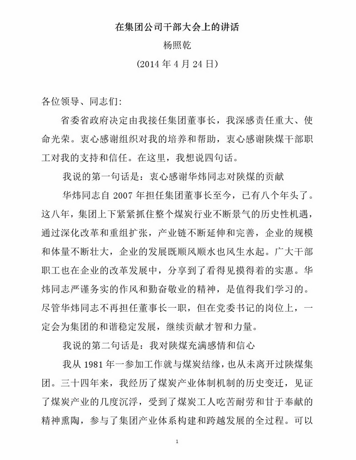 4月24日上午,陜西煤業(yè)化工集團(tuán)公司召開干部大會,宣布省政府任免文件。省委組織部副部長田曉東、省國資委黨委書記孫安會出席會議,集團(tuán)公司領(lǐng)導(dǎo)班子全體成員、監(jiān)事會主席、集團(tuán)機(jī)關(guān)各部門負(fù)責(zé)人及所屬基層單位黨政主要負(fù)責(zé)人參加了會議。會議由孫安會主持。 省委組織部副部長田曉東作講話 省國資委黨委書記孫安會宣讀文件會上,首先由孫安會宣讀了省政府任免文件,宣布楊照乾任…