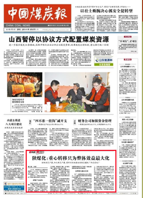 中國煤炭報(bào):2014年4月25日 第1版陜煤化:重心轉(zhuǎn)移只為整體效益最大化控制老區(qū)產(chǎn)量,加大新區(qū)產(chǎn)量,有針對性地重組收購在建電廠和在役電廠 2013年,陜西煤業(yè)化工集團(tuán)實(shí)現(xiàn)銷售收入1505億元,煤炭產(chǎn)量1.276億噸,利潤10.2億元,原煤生產(chǎn)成本同比降幅達(dá)7.27%。練好內(nèi)功,實(shí)現(xiàn)企業(yè)轉(zhuǎn)型升級,成了陜煤化集團(tuán)逆勢而上的法寶。調(diào)整產(chǎn)品結(jié)構(gòu)轉(zhuǎn)型升級的第一步是,根據(jù)市場需求,調(diào)整產(chǎn)品結(jié)…