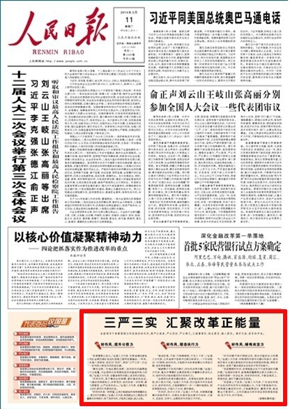 三嚴三實 匯聚改革正能量(代表委員議國是)各級領導干部都要樹立和發揚好的作風,既嚴以修身、嚴以用權、嚴以律己,又謀事要實、創業要實、做人要實。請聽代表、委員的聲音。《 人民日報 》( 2014年03月11日 01 版)好作風,提升公信力“改革需要公信力。”全國人大代表、甘肅省靖遠煤電公司紅會第四煤礦選運隊助理工程師呂惠嬙說,一年來,從實施八項規定,到反對“四風”,再…