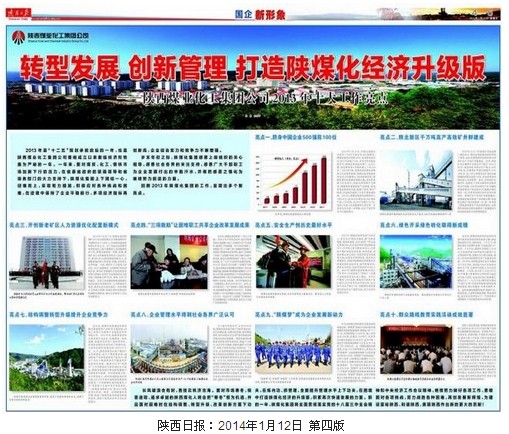 轉型發展 創新管理 打造陜煤化經濟升級版陜西煤業化工集團公司2013年十大工作亮點2013年是“十二五”規劃承前啟后的一年,也是陜西煤業化工集團公司重組成立以來面臨經濟形勢最為嚴峻的一年。一年來,面對煤炭、化工、鋼鐵市場加劇下行的壓力,在省委省政府的堅強領導和省級各部門的大力支持下,集團公司上下團結一心,迎難而上,采取有力措施,積極應對各種挑戰和困難,在逆境…