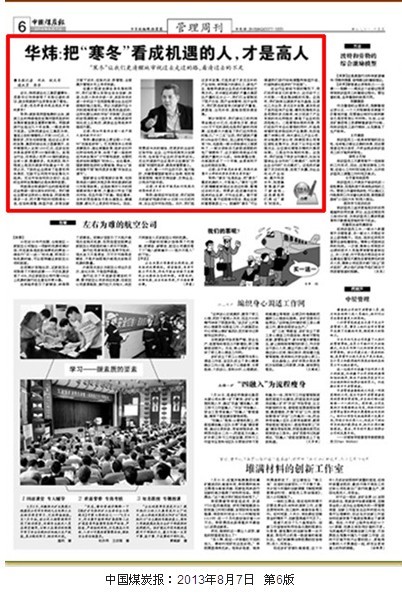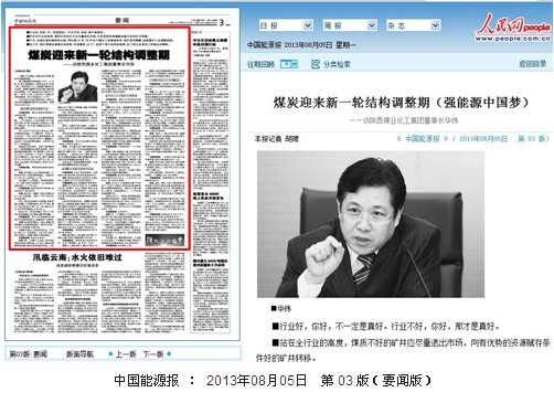煤炭迎來新一輪結構調整期(強能源中國夢)——訪陜西煤業化工集團董事長華煒■華煒■行業好,你好,不一定是真好。行業不好,你好,那才是真好。■站在全行業的高度,煤質不好的礦井應盡量退出市場,向有優勢的資源賦存條件好的礦井轉移。■今天,當我們面對困難的時候,再回想07年、08年關于煤化工的那場爭論,我們更加清醒:發展煤化工應慎重選擇。■近幾年,我們津津樂道國企…