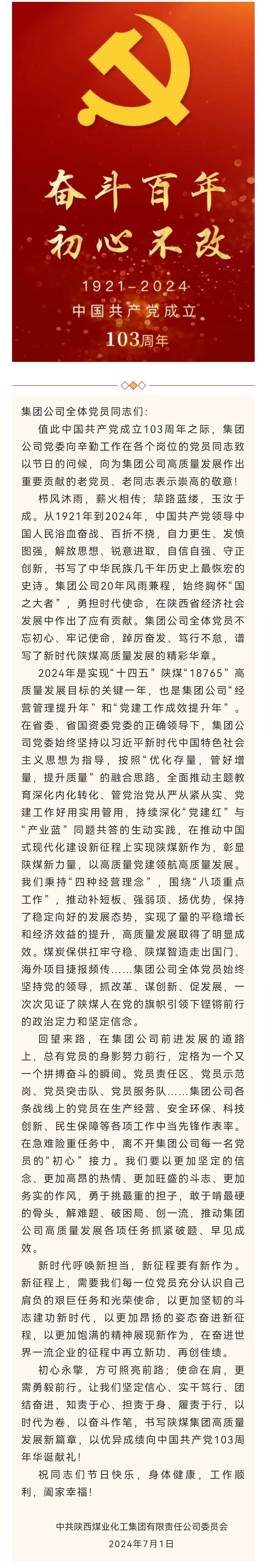 6月21日,陜煤集團組織召開警示教育會議,深入學習貫徹習近平總書記關于全面加強黨的紀律建設重要論述,認真落實全省和省國資系統警示教育暨專題黨課會議精神,教育引導黨員干部知敬畏、存戒懼、守底線,始終保持昂揚的精神狀態,優良的工作作風,進一步鞏固集團公司風清氣正的政治生態。集團公司黨委書記、董事長張文琪出席會議并講黨紀學習教育專題黨課。會議由集團公司黨委副…
