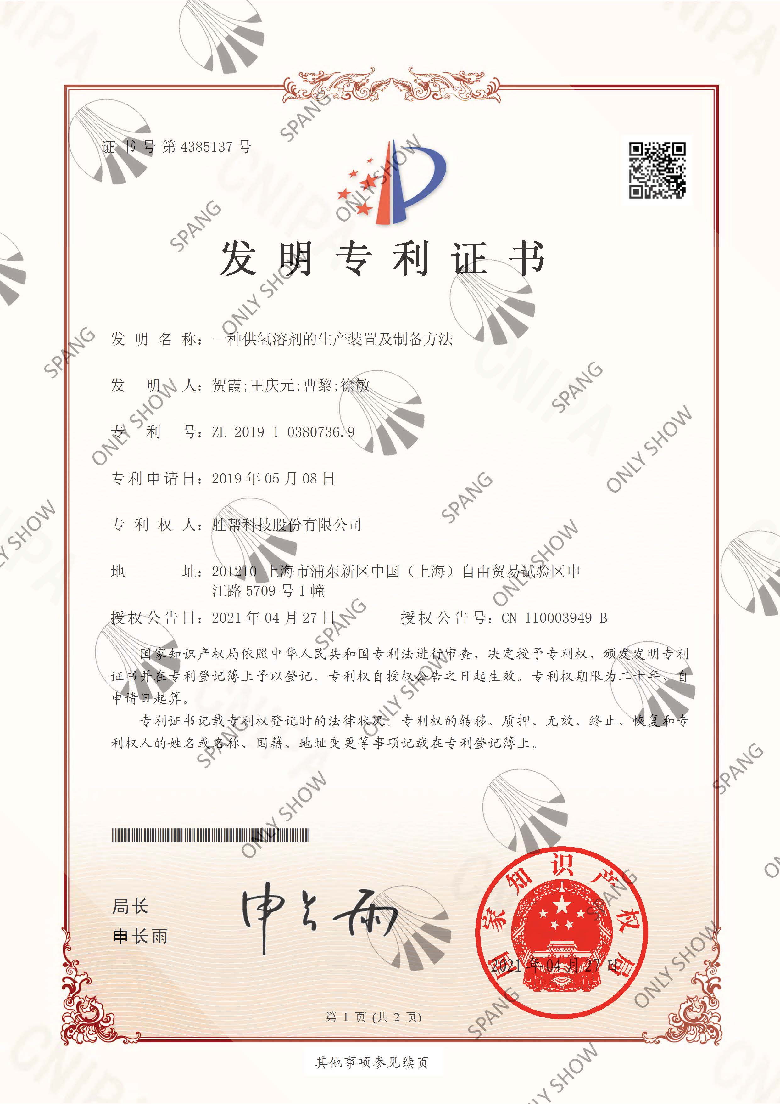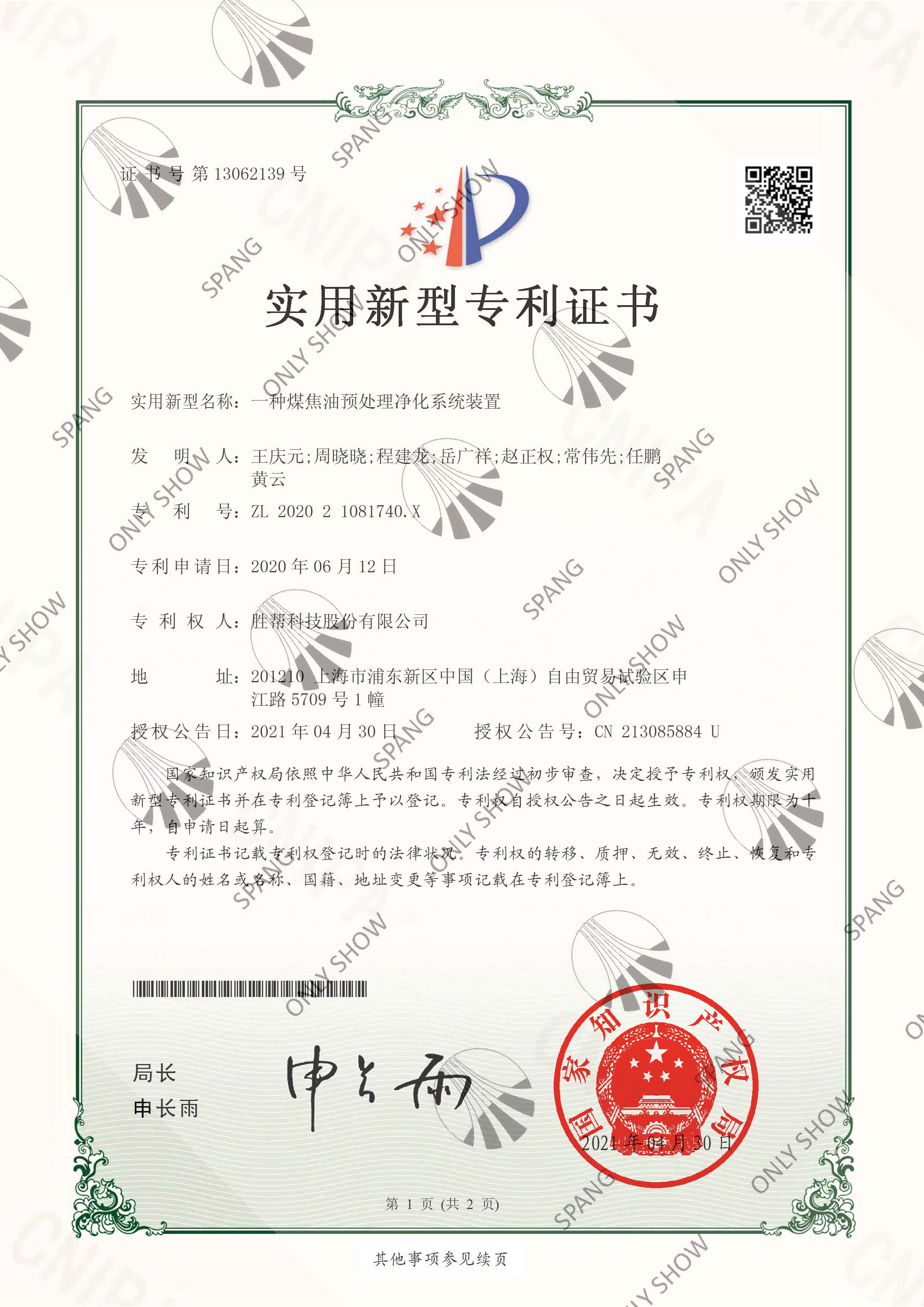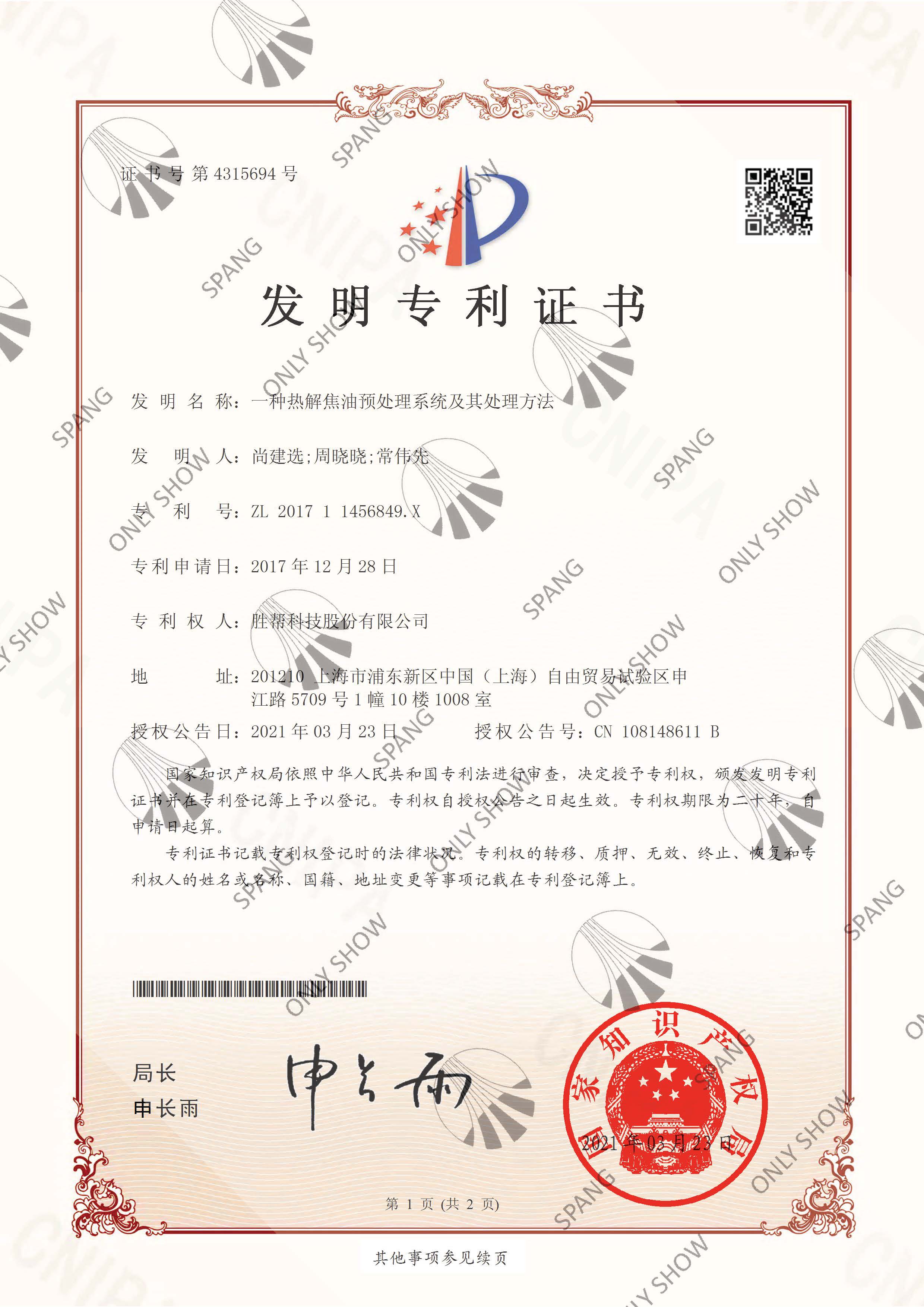 我司《一種熱解焦油預(yù)處理系統(tǒng)及其處理方法》、《一種生產(chǎn)供氫溶劑的裝置及方法》、《一種供氫溶劑的生產(chǎn)裝置及制備方法》、《一種煤焦油預(yù)處理凈化系統(tǒng)裝置》4項發(fā)明專利獲得國家知識產(chǎn)權(quán)局授權(quán),其中包括三項發(fā)明專利、一項實用新型專利。根據(jù)勝幫專利獎金獎勵辦法,已對專利相關(guān)申請人進(jìn)行獎金發(fā)放。