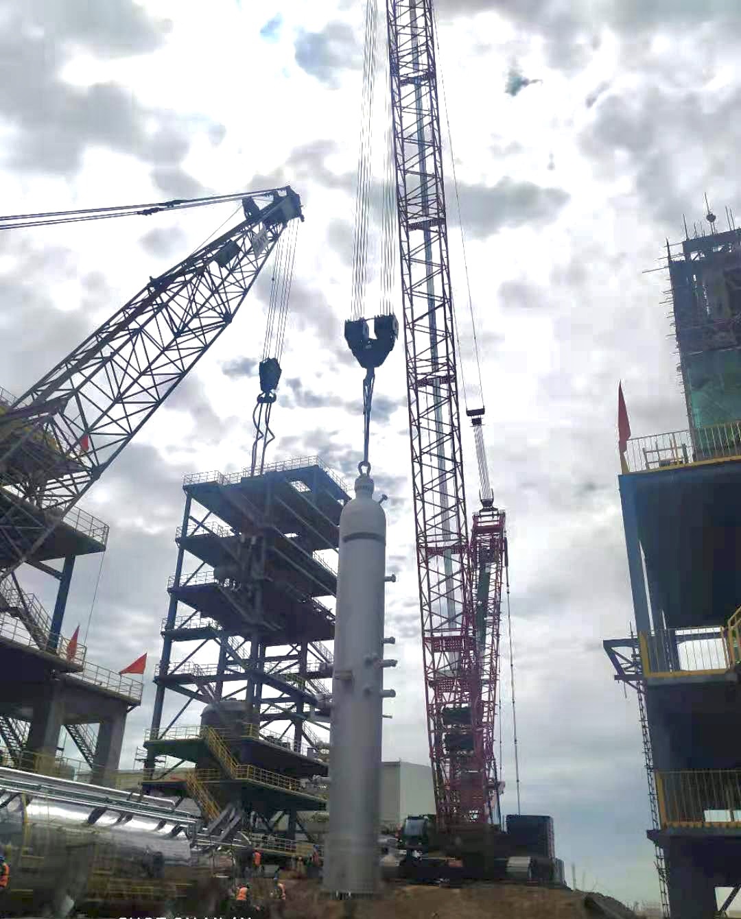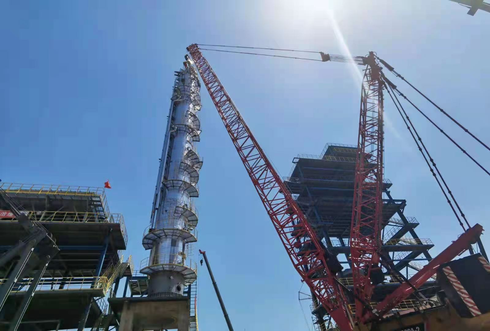原料分餾塔(T101)順利吊裝就位