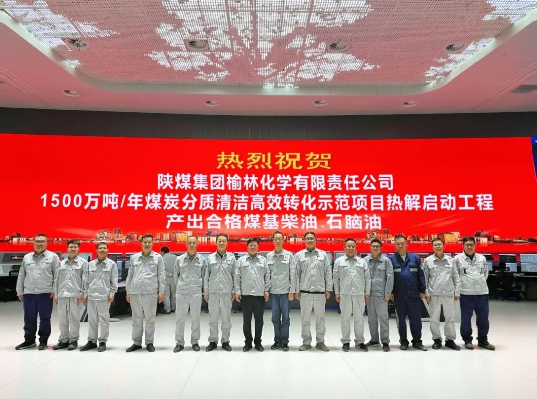 2023年6月11日8時18分,陜煤集團榆林化學有限責任公司1500萬噸/年煤炭分質清潔高效轉化示范項目熱解啟動工程供氫溶劑及輕油加氫聯合裝置一次性開車成功并順利產出合格煤基柴油、石腦油。