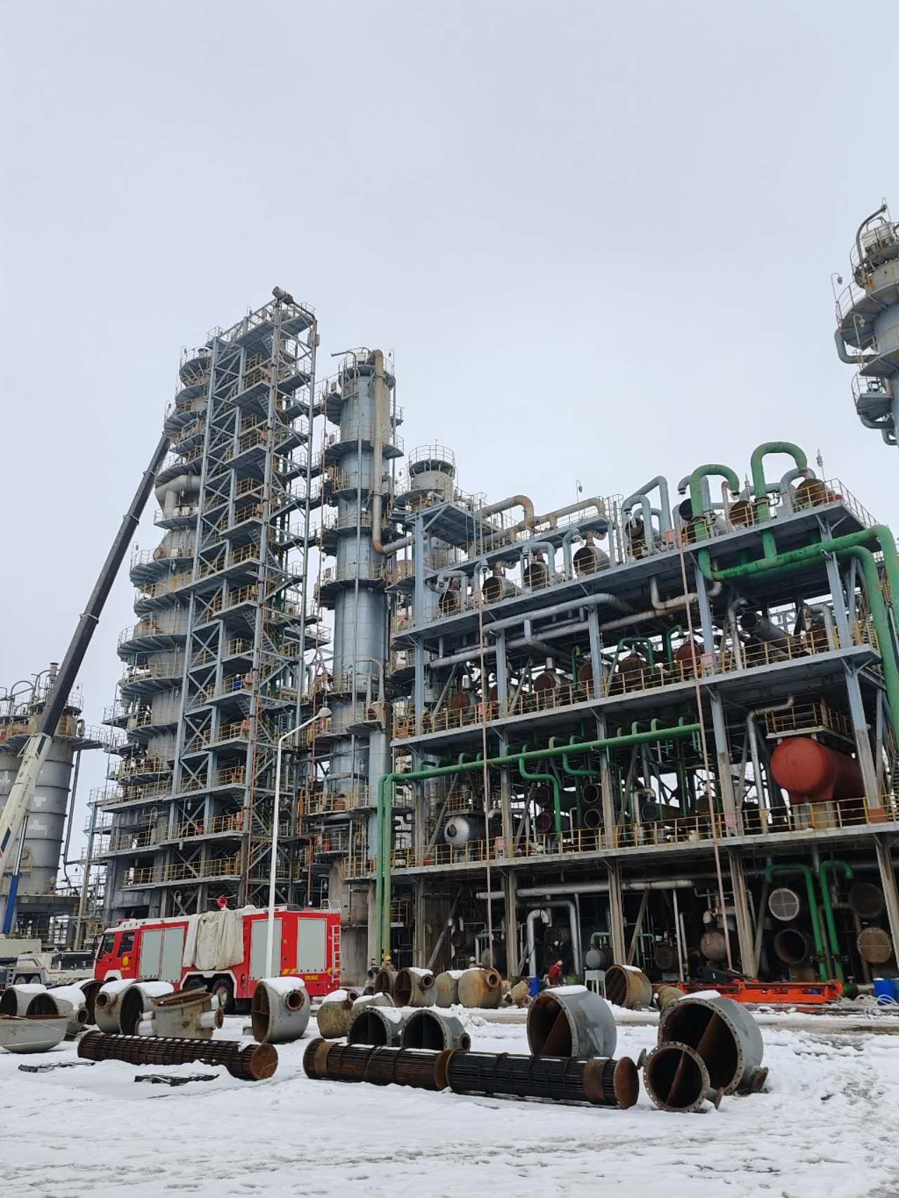 中大中國石油公司坐落于吉爾吉斯斯坦楚河州卡拉巴德市東方工業園,80萬噸/年煉油項目全廠裝置已停工四年,目前急需復工復產。勝幫科技在接到緊急全面復工復產的任務后,各專業室聞令而動,設備室迅速響應,挑選靜設備和動設備兩專業骨干技術人員,遠赴千里海外,投身到中大石油復工復產檢修工作現場。