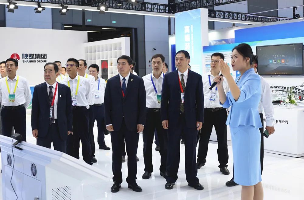 在陜煤展區,沙盤、現場連線技術、高端裝備、實物展品等陳展內容,受到各級領導的普遍贊揚。特別是通過現場連線技術,巡館領導遠程沉浸式體驗了一鍵啟動曹家灘2500萬噸/年世界最高的10米超大采高綜采工作面設備,詳細了解了全球在建最大的煤化工項目,以及吉爾吉斯斯坦中大石油項目情況,切實感受了陜煤集團現代能源綠色轉型發展成就。