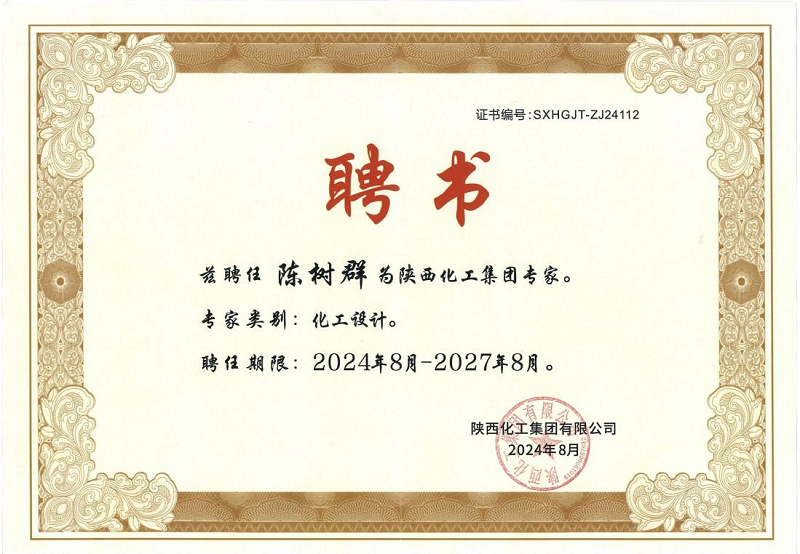 近日,從化工集團傳來喜訊,勝幫科技陳樹群、任鵬、曹黎、于清江、梁長濤五位同志經過化工集團專家庫的層層遴選,分別被聘任為陜西化工集團化工工藝專業和機械專業的專家,聘期為3年。