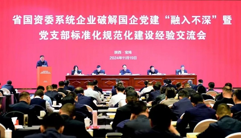 11月19日,陜西省國資委系統企業破解國企黨建“融入不深”暨黨支部標準化規范化建設經驗交流會在寶雞召開。省國資委黨委書記任國出席會議并講話。省國資委黨委委員、副主任楊愛民主持會議,并通報省屬企業黨委前置研究情況穿透式評估結果。省國資委黨委委員、駐委紀檢組組長徐永兵通報省國資委系統清廉國企建設示范先行單位檢查驗收結果。省國有企業監事會主席王春玲通報省國資委系統企業標準化規范化建設示范黨支部檢查驗收結果。
