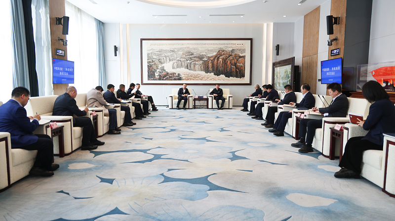 中聯西北院醫療康養事業部、市政公用事業部、第一工程公司、市場協同部負責人,陜煤集團工程總監、基本建設管理部總經理李仰東,企業管理部、黨政辦公室、規劃發展部和所屬電力集團、建設集團相關負責人參加座談。(雷添淇)