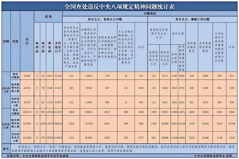 今年1月,中央紀委國家監委公布的2024年全國查處違反中央八項規定精神問題統計表顯示,2024年以來查處的違規收送禮品禮金問題占享樂主義、奢靡之風問題的47.7%,居于首位,糾治違規收送禮品禮金仍需持續發力。