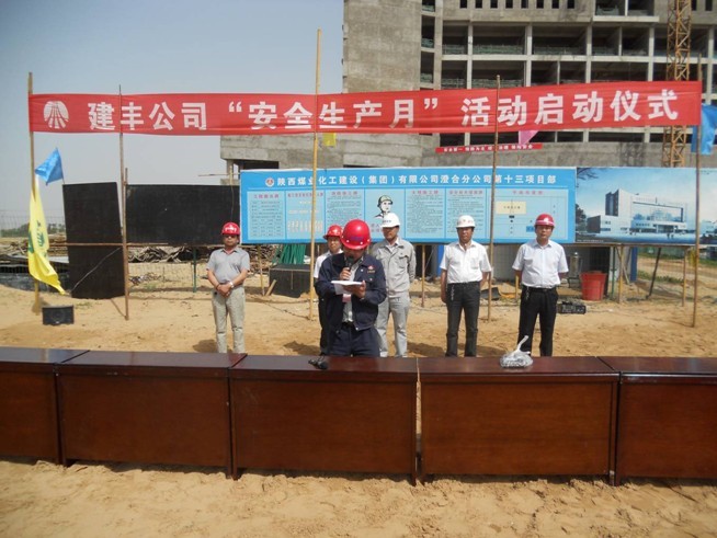 此次啟動儀式標志著建豐項目2013年“安全生產月”活動的序幕已經拉開。項目部要求以 “安全生產月”活動為契機,樹立憂患意識,積極開展隱患排查,加大對重大危險源和重要環境因素的治理力度,全面提升公司安全管理水平。