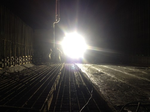 晚上9點(diǎn)多,901單元出焦池基礎(chǔ)澆筑工作還在繼續(xù)
