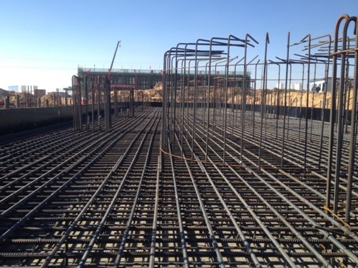 902單元構(gòu)-3筏板基礎(chǔ)連夜綁扎就緒,次日準(zhǔn)備澆筑