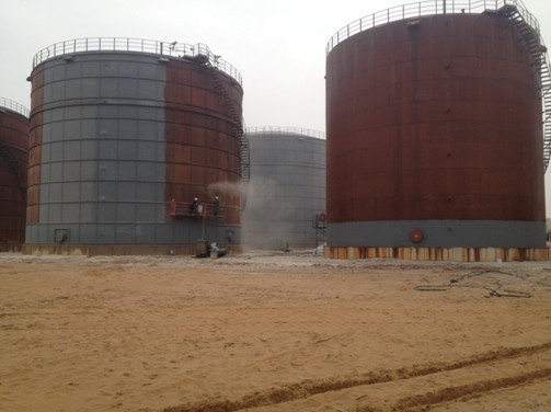 910成品油罐區(qū)噴砂防腐工作火熱進(jìn)行中