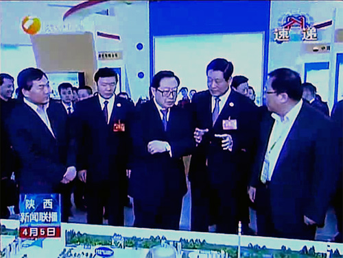 陜西電視臺4月5日晚陜西新聞聯播報道西洽會開幕,圖為領導視察陜煤化集團展區鏡頭