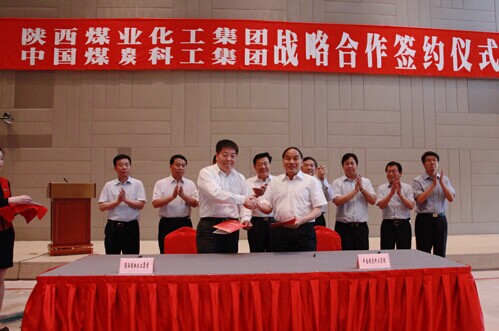 陜煤化集團(tuán)總經(jīng)理嚴(yán)廣勞與中國(guó)煤炭科工集團(tuán)總經(jīng)理吳德政代表雙方簽字