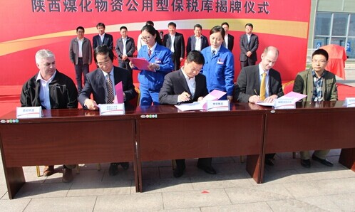 揭牌當日,陜西煤化物資集團已經與德國艾柯夫公司、德國沃爾夫岡.普林福克公司(PW)、陜西易初明通工程機械維修服務有限公司和北京布拉尼斯自動化技術有限公司(EEP)等世界知名礦用綜采掘設備主要生產商和配套商簽訂了保稅貨物存放協議。
