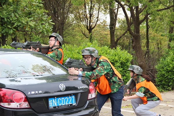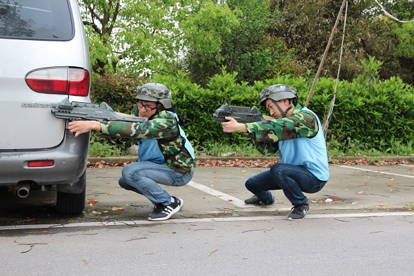 中午小憩之后,真人CS實戰(zhàn)正式拉開帷幕,隊員們仔細聆聽教練講解的裝備知識和基本戰(zhàn)法。在挑選完各自裝備后雙方隊員早已躍躍欲試,迫不及待地準備戰(zhàn)斗。