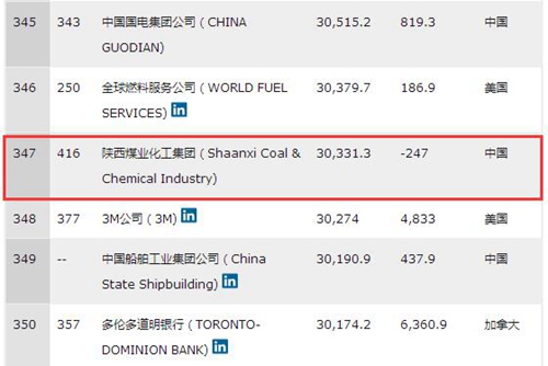 7月20日晚,美國《財富》雜志“2016年財富世界500強榜單”公布,陜西煤業化工集團繼上年首次躋身后,今年再次憑借1906億元人民幣(303.31億美元)的總收入,位列榜單第347位,較上年前進69名。