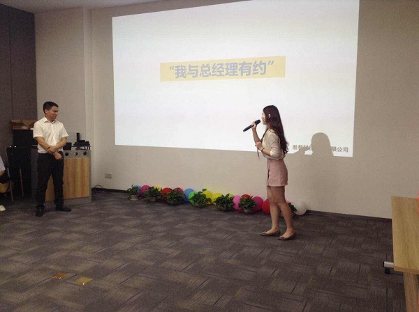 隨著“我與總經理有約”創意游戲的開始,歡迎會被推向高潮。一名新入職大學生獲得了和總經理面對面交流暢談未來職業規劃的機會。